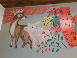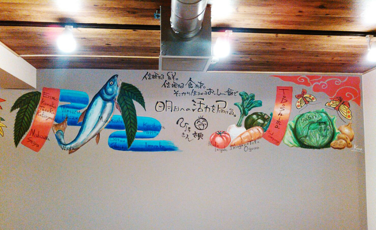 澄川にある、ひょうきん顔さんの壁面チョークアートとロゴを制作させていただきました。